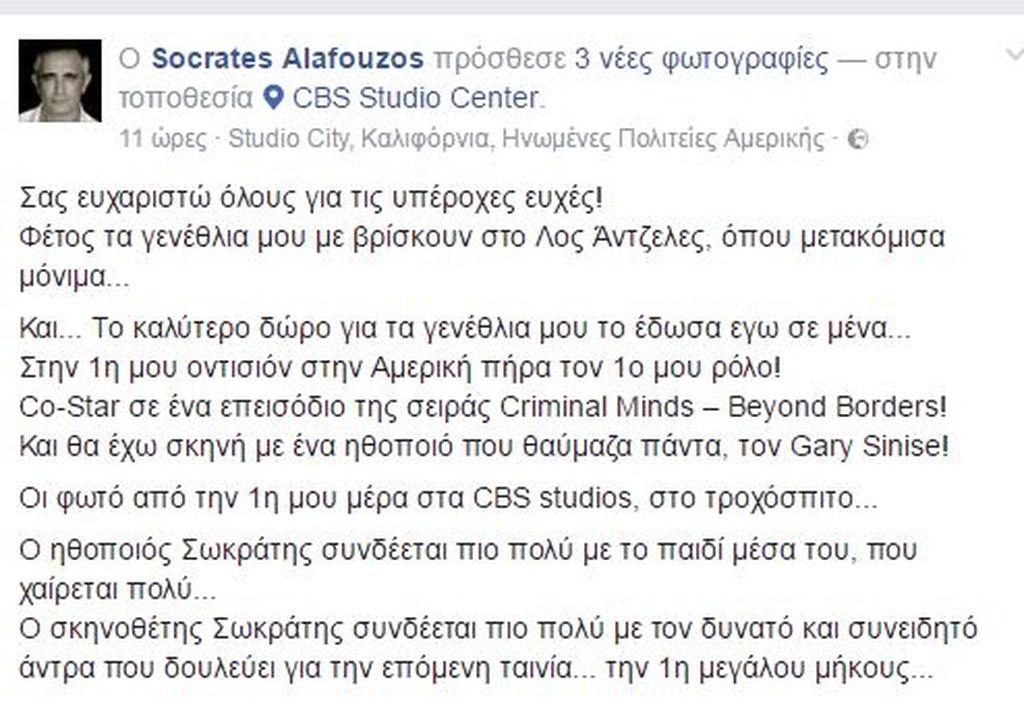 Ο λόγος για τον Σωκράτη Αλαφούζο, που δημοσίευσε φωτογραφίες του από το Λος Άντζελες και αποκάλυψε το πιο όμορφο δώρο που πήρε ανήμερα των γενεθλίων του!