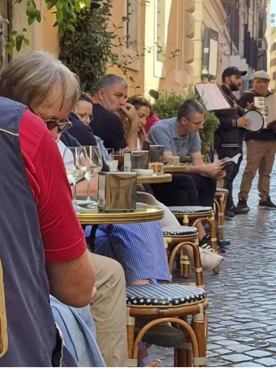 Όπως μπορείτε να δείτε και στην εικόνα πιο κάτω, το ερωτευμένο ζευγάρι κάθισε σε ένα από τα εστιατόρια της πλατείας, προκειμένου να γευτεί την ιταλική κουζίνα, κατά τη διάρκεια μεσημερινής τους εξόδους.