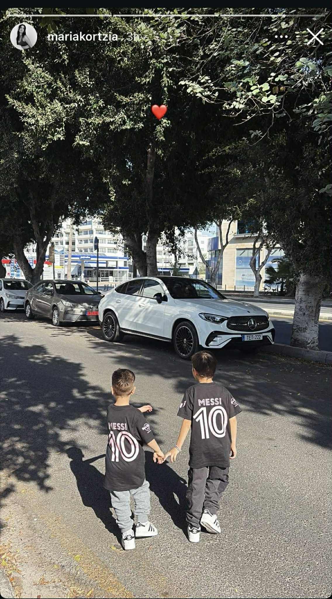 Η Μαρία Κορτζιά, την Κυριακή 9 Νοεμβρίου, δημοσίευσε μέσα από τον προσωπικό της λογαριασμό στο instagram, ένα γλυκό στιγμιότυπο με τα δύο της αγοράκια, Σοφοκλή και Γιώργο, οι οποίοι περπατούν χέρι - χέρι φορώντας μπλούζα του ποδοσφαιριστή Messi, ο οποίος όπως φαίνεται είναι ο αγαπημένος τους παίκτης, μετά από τον μπαμπά τους, βεβαίως, Πιέρο Σωτηρίου.