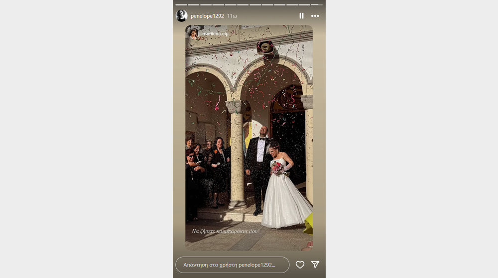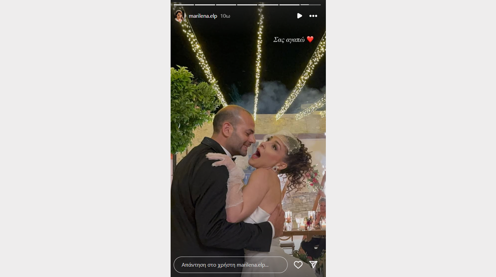 Η εντυπωσιακή νύφη όπως είδαμε μέσα από τα διάφορα stories που αναρτήθηκαν στα social media, έλαμπε πλάι στο πλευρό του συζύγου της, Στέλιου, με το μυστήριο και το δείπνο να πραγματοποιείται στη Σκαρίνου.