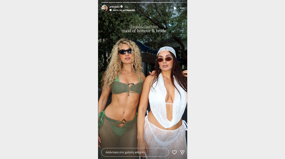 Μάλιστα η Antigoni, σε επόμενο story, ανακοίνωσε πως πρόκειται να είναι η κουμπάρα στον γάμο της αδερφής της, ποζάροντας η μια δίπλα στην άλλη, ως Μaid of Honour & Bride.