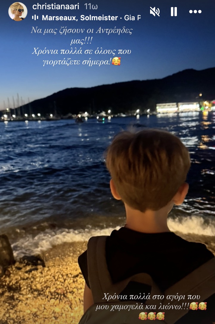 Το βράδυ της Κυριακής αφού ευχήθηκε στον γιο της Ανδρέα, «Χρόνια πολλά» για την ονομαστική του εορτή δημοσίευσε και μία φωτογραφία με τον σύζυγο της με τους δύο να χαμογελούν και με τη Χριστιάνα να σχολιάζει: «Αν το Σαββατοκύριακο ήταν φωτογραφία». Δείτε τα στιγμιότυπα πιο κάτω: