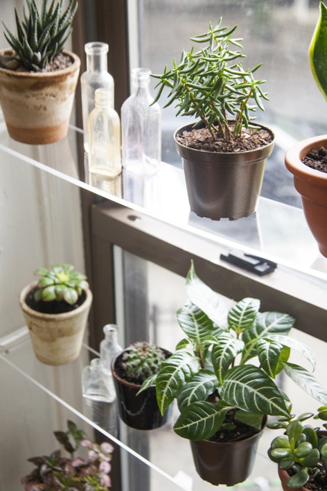 Τα περισσότερα φυτά δίνουν τον καλύτερό τους εαυτό όταν είναι κοντά στο φως. Εκμεταλλευτείτε το και τοποθετήστε τα σε ράφια μπροστά από τα παράθυρα. Στην αγορά υπάρχουν αναρίθμητες επιλογές σε ράφια: διαλέξτε ξύλινα για ένα πολύ φυσικό αποτέλεσμα ή γυάλινα αν θέλετε μια μοντέρνα πινελιά.