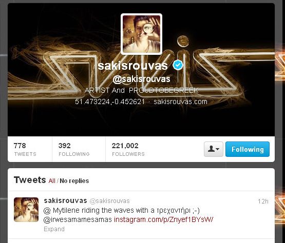 "@ Mytilene riding the waves with a τρεχαντήρι ;-)" έγραψε χθες στο Instagram ο αγαπημένος τραγουδιστής, ανεβάζοντας την ίδια στιγμή και μια φωτογραφία του. Η φωτογραφία την οποία ο star μοιράστηκε με τους followers του στο Twitter, κάνει... θραύση!