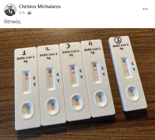 Ο δημοσιογράφος, ο οποίος απουσίαζε από την εκπομπή του αυτές τις ημέρες, ανήρτησε μία εικόνα με τα πέντε self test που έκανε και το τελευταίο να δείχνει πως είναι θετικός στον ιό.