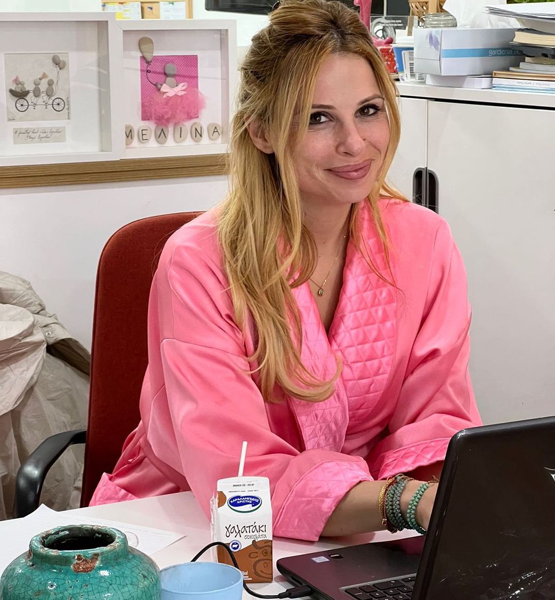 Χαρακτηριστικά νιώθoντας σαν στο σπίτι της, η παρουσιάστρια έφθασε στον σταθμό του Alpha, με το ροζ μπουρνούζι της, για να την κρατάει πιο ζεστή και πιο άνετη, ενώ πόζαρε στον φακό χωρίς ίχνος μακιγιάζ. Δείτε τη σχετική εικόνα πιο κάτω: