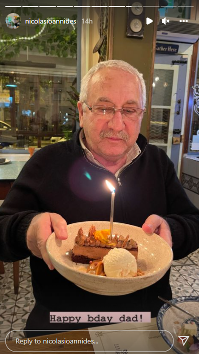 Συγκεκριμένα ο Νικόλας Ιωαννίδης, επέλεξε να ευχηθεί στον πατέρα του, Γιάννη, φωτογραφίζοντας τον με την τούρτα του, και σχολιάζοντας σε instastory του: "Χρόνια πολλά πατέρα". Δείτε πιο κάτω την εικόνα: