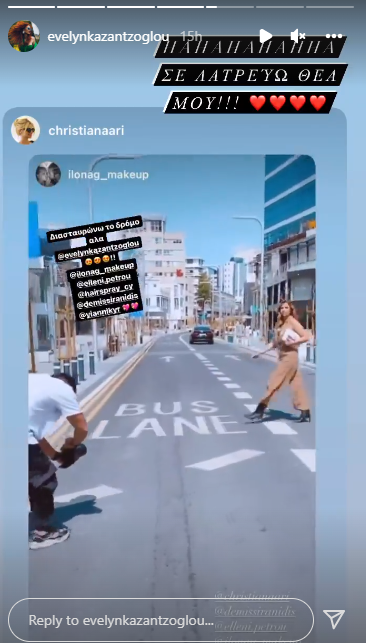 Mέσα από ένα χθεσινό της instastory, η Χριστιάνα Αριστοτέλους, μοιράστηκε μαζί μας τα backstage από φωτογράφηση που έκανε σε κεντρικό δρόμο της Λευκωσίας.