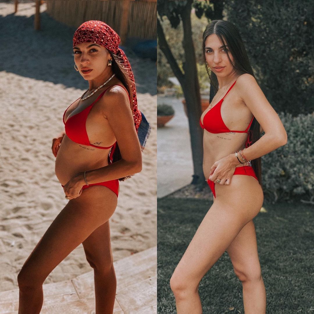 Η νεαρή instagrammer και επιχειρηματίας του νησιού μοιράστηκε στον προσωπικό της λογαριασμό στο Instagram μία εικόνα όπου αντιπαραβάλλει την πόζα της με το ίδιο κόκκινο μπικίνι, στον έκτο μήνα της κύησης της και σήμερα δείχνοντάς μας την post-partum σιλουέτα της.
