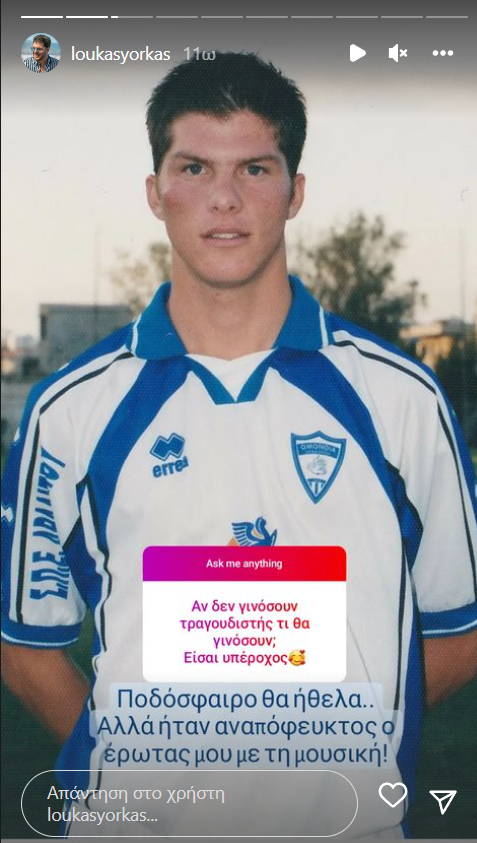 Συγκεκριμένα σχολίασε: "Ποδόσφαιρο θα ήθελα, αλλά ήταν αναπόφευκτος ο έρωτάς μου με την μουσική", παρουσιάζοντας μας εικόνα του από φωτογράφηση που είχε ως ποδοσφαιριστής στην ομάδα της Ομόνοιας Αραδίππου.Δείτε την εικόνα πιο κάτω: