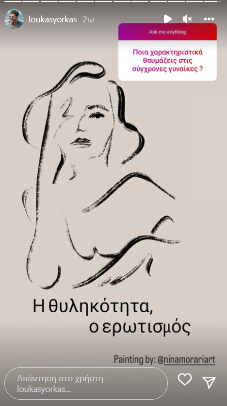 Έτσι, μάθαμε πως ο Λούκας Γιώρκας, ελκύεται από τον ερωτισμό και τη θυληκότητα της γυναίκας. Δείτε την εικόνα πιο κάτω: