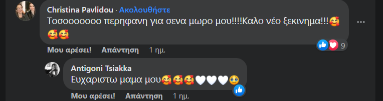 Στα σχόλια που διαβάσαμε κάτω από το post, πετύχαμε φυσικά και αυτό της μητέρας της, Χριστίνας Παυλίδου, η οποία φανερά συγκινημένη για την εξέλιξη του παιδιού της, δεν έκρυψε την υπερηφάνεια της.