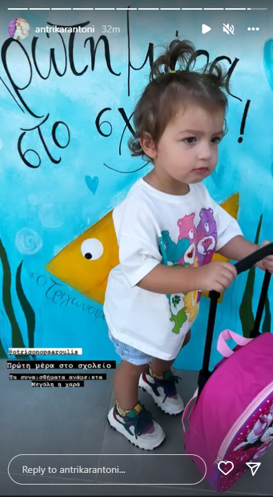 Η Κύπρια παρουσιάστρια, χαρακτηριστικά, ανήρτησε στον λογαριασμό της στο instagram, στιγμιότυπο με την μικρούλα να κρατάει τη βαλιτσούλα της, και την Άντρη Καραντώνη να μην κρύβει το πόσο συγκινημένη είναι.