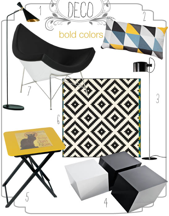 1. Φωτιστικό δαπέδου, Roche Bobois / 2. Μαξιλαράκι, BoConcept / 3. Φωτιστικό δαπέδου Coupe, Rooms / 4. Σύνθετο τραπέζι, Home & Deco / 5.Τραπεζάκι με μοτίβο, Kare / 6. Ύφασμα ταπετσαρίας, IKEA / 7.Καρέκλα του οίκου Edimas, Living