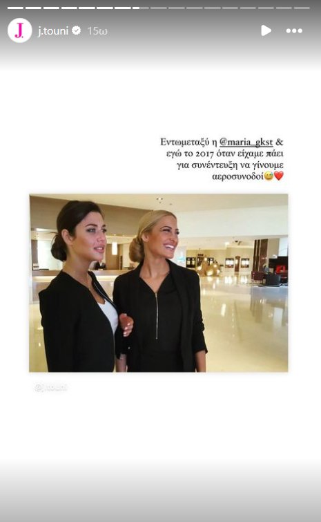 Συγκεκριμένα, η Ιωάννα Τούνη έγραψε: "Εγώ με τη φίλη μου, το 2017 όταν είχαμε πάει για συνέντευξη να γίνουμε αεροσυνοδοί". Δείτε την εικόνα:
