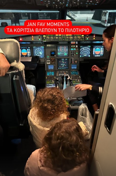 Η μικρές απαθανατίστηκαν από την επώνυμη Ελληνίδα να βρίσκονται μέσα στο πιλοτήριο αεροσκάφους, από το πρώτο ταξίδι που είχαν για τη φετινή χρονιά στο Dubai.