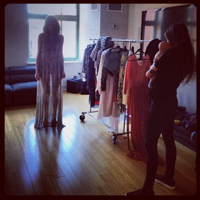 Στο instagram πόσταρε φωτογραφίες η Σοφία Καρβέλα από τη νέα της δουλειά. Με τον μικρό της Νίκο αγκαλιά η Σοφία Καρβέλα προβάρει τις νέες της δημιουργίες στο διαμέρισμα της στη Νέα Υόρκη μαζί με φίλες της και συνεργάτες. Ο μικρός στη ζεστασιά της αγκαλιάς της μαμάς του βλέπει τις νέες δημιουργίες της και τις εγκρίνει. Η Σοφία δημιούργησε αέρινα maxi φορέματα που κολακεύουν τις καλλίγραμμες σιλουέττες.