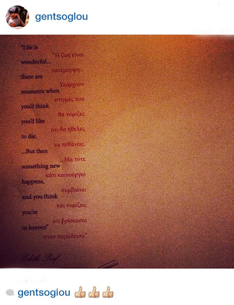 «Η ζωή είναι πανέμορφη… Υπάρχουν στιγμές που θα νόμιζες ότι θα ήθελες να πεθάνεις… Μα τότε κάτι καινούργιο συμβαίνει και νομίζεις ότι βρίσκεσαι στον παράδεισο». Αυτό ήταν το μήνυμα - σε φωτογραφία - που ανάρτησε στον προσωπικό του λογαριασμό στο Instagram ο Σάββας Γκέντσογλου το βράδυ της Κυριακής, με την Αγγελική Ηλιάδη να αφήνει το δικό της σχόλιο από κάτω γράφοντας: «Ναι αγάπη μου!!! Το μωρό σου!!!».