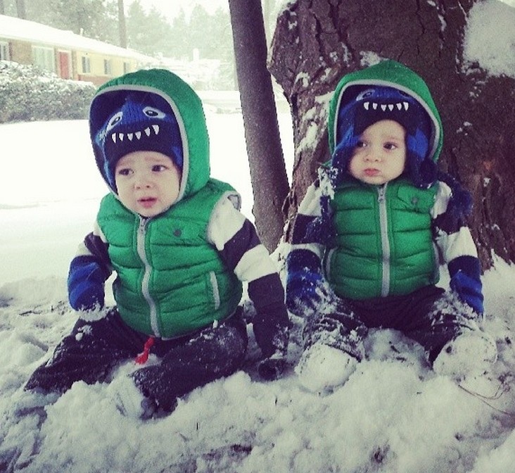 Φορώντας πράσινο μπουφάν και αθλητικά ρουχαλάκια τα διδυμάκια της Καλομοίρας πόζαραν στο χιονισμένο γρασίδι του σπιτιού της οικογένειας μια και στην Αμερική αυτή την στιγμή έχει μεγάλη χιονόπτωση. Tα διδυμάκια που γλυκά απο ποτέ είναι τόσο χαριτωμένα που τρελαίνουν την τραγουδίστρια. "Crazy snow over here" έγραψε στο instagram η γλυκιά Καλομοίρα που με τον ερχομό των δίδυμων παιδιών της νιώθει να βρίσκεται στον παράδεισο.