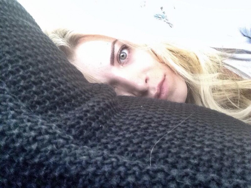 Η Κατερίνα θέλησε να μοιραστεί μαζί μας την όψη της το πρωί τη στιγμή που ξυπνάει και δεν έχει ίχνος μακιγιάζ στο πρόσωπο της, ξαπλωμένη στο κρεβάτι και με το πράσινο μάτι της να κεντρίζει το βλέμμα μας.