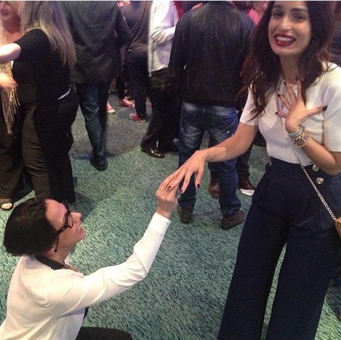 Στην επίσημη πρεμιέρα της παράστασης «Priscilla, η Βασίλισσα της Ερήμου» βρέθηκε η Τόνια Σωτηροπούλου το βράδυ της Τρίτης 14 Μαΐου και η βραδιά για εκείνη, όπως φαίνεται από την φωτογραφία που δημοσίευσε στον προσωπικό της λογαριασμό στον Instagram, ήταν γεμάτη εκπλήξεις! Η Τόνια Σωτηροπούλου δέχθηκε "πρόταση γάμου" όχι από κάποιον θαυμαστή της, εκπρόσωπο του ανδρικού φύλου αλλά από μια γυναίκα! Μια γυναίκα φαίνεται γονατισμένη μπροστά της με το χέρι της να κρατά το δάχτυλο της ηθοποιού! Η Τόνια Σωτηροπούλου εξεπλάγη από το απρόσμενο περιστατικό-εκδήλωση θαυμασμού που έγινε μπροστά στα μάτια θεατών της παράστασης! Το μόνο σίγουρο είναι ότι έγινε με χιούμορ αλλά και η ίδια η ηθοποιός το διαχειρίστηκε με χαμόγελο!