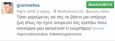 Ο κουμπάρος και φίλος του ζευγαρίου, Δημήτρης Γιαννέτος ανέρτησε στον προσωπικό του λογαριασμό στο facebook τις παρακάτω φωτογραφίες γράφοντας τα πιο κάτω λόγια: "Τόσο χαρούμενος για σας να ζήσετε μια υπέροχη ζωή όπως την έχετε ονειρευτεί σας αγαπάω πολύ καινούργια μου οικογένεια! Ο κουμπάρος!".