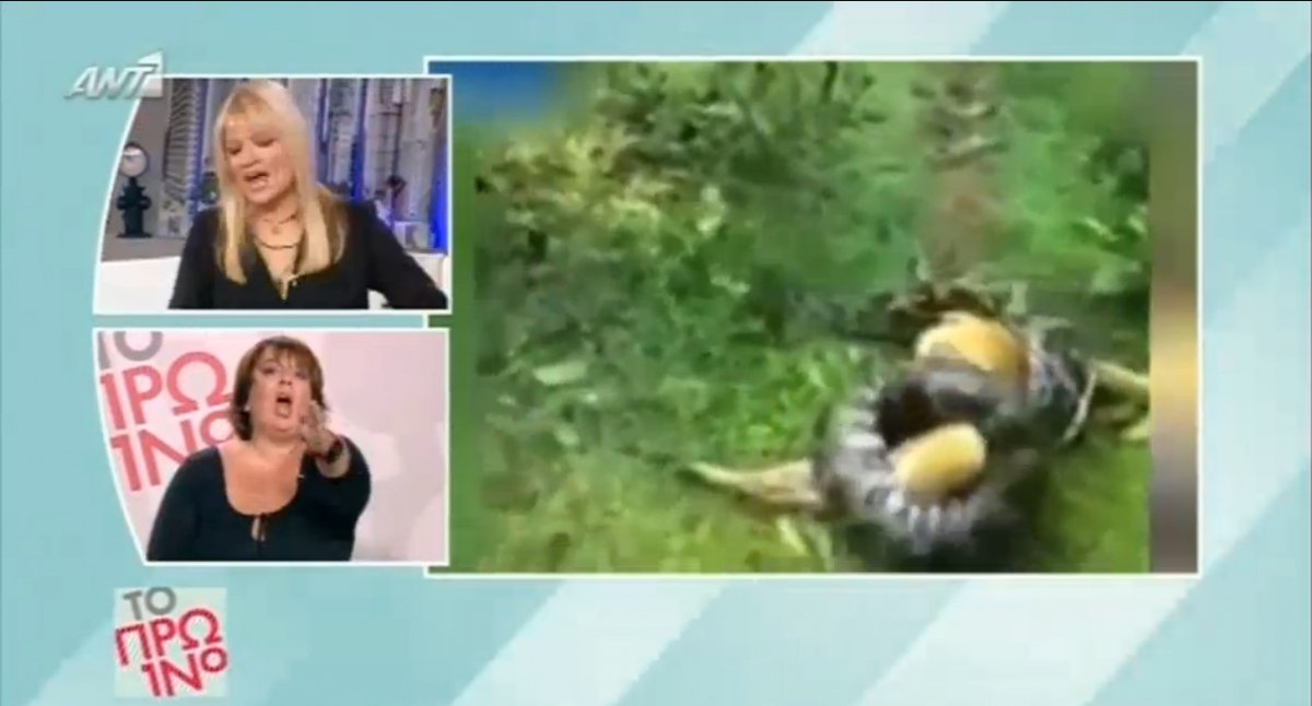 Η Φαίη Σκορδά δεν άντεξε στο θέαμα ενός πίθωνα που προσπάθησε να φάει ένα σκύλο και όπως θα δείτε και στο video η αντίδρασή της έδειξε ότι μάλλον φοβήθηκε πολύ.