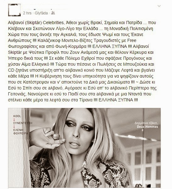 Ο καλλιτέχνης χωρίς λόγο και αιτία εξαπέλυσε τα πυρά του κατά της Φουρέιρα που δήλωσε σε συνέντευξη της την Αλβανική της καταγωγή της.