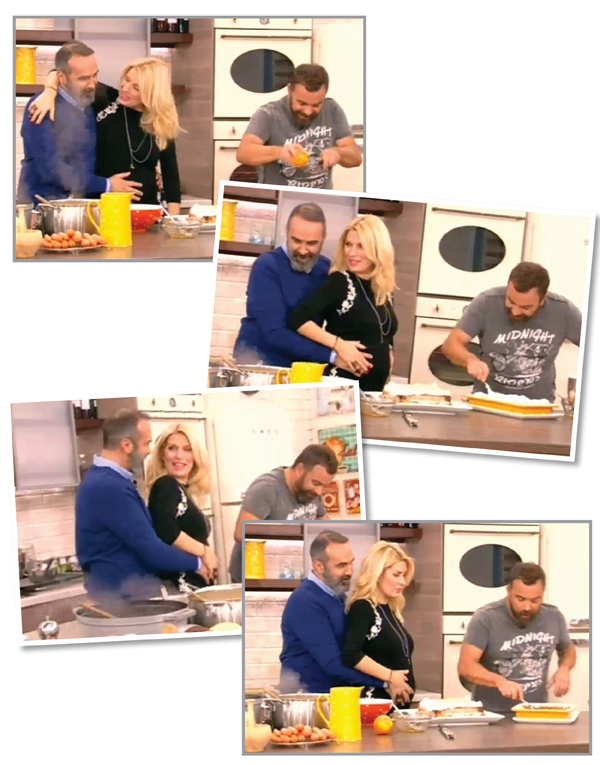 Η Ελένη Μενεγάκη έκανε είσοδο στην κουζίνα της εκπομπής και ένας από τους στενούς της συνεργάτες και φίλους, ο Γρηγόρης Γκουντάρας την πλησίασε και άρχισε να της χαϊδεύει απροκάλυπτα την φουσκωμένη της κοιλίτσα!
