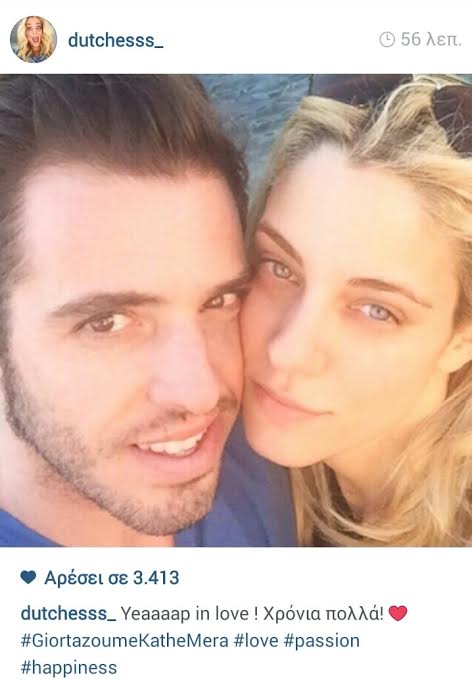 Η Δούκισσα ανέβασε τη φωτογραφία και παραδέχτηκε ότι είναι ερωτευμένη. "Yeaaaap in love ! Χρόνια πολλά! #GiortazoumeKatheMera #love #passion #happiness", έγραψε χαρακτηριστικά.