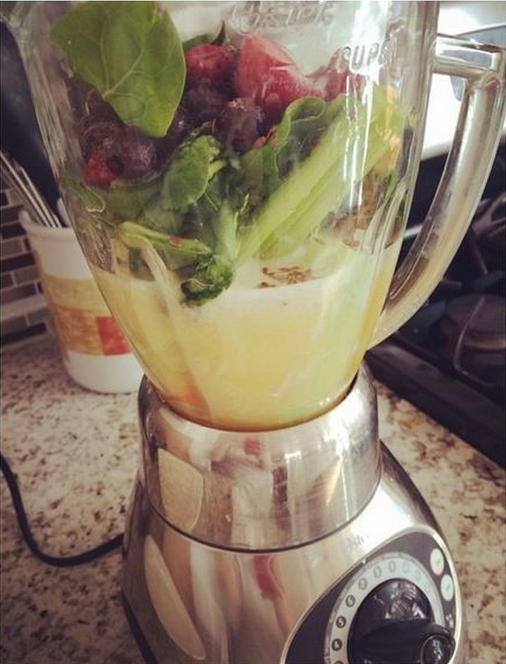 Η ίδια ανήρτησε μία φωτογραφία στον προσωπικό της λογαριασμό στο Instagram, όπου μοιράζεται το μυστικό της για το σώμα που διαθέτει. Έναν πλούσιο και υγιεινό χυμό από φρούτα και λαχανικά. Μάλιστα, πληροφόρησε τους διαδικτυακούς της φίλους τι συμπεριλαμβάνει το μίγμα γράφοντας στη λεζάντα που συνόδευσε τη φωτογραφία: “Ο υγιεινός χυμός μου με λαχανικά και φρούτα. Περιλαμβάνει καρότα, σέλερι, αγγούρι, λίγο ginger, σπανάκι, μούρα, σπόρους λιναριού και χυμό πορτοκάλι!”
