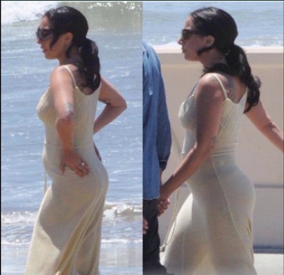Την φωτογραφία ανήρτησε θαυμαστής της και έγραψε: “Θεέ μου, η Lady Gaga είναι έγκυος“. Πριν μερικές μέρες, οι φωτογράφοι την είχαν απαθανατίσει με τον αρραβωνιαστικό της και την μητέρα του και εκείνη φορούσε φαρδύ καφτάνι, ενώ όλα ξεκίνησαν από την τελευταία της συναυλία όπου έδειχνε να έχει μερικά κιλά παραπάνω. Η τελευταία φωτογραφία που κάνει το γύρω των social media την δείχνουν με ένα μακρύ, εφαρμοστό μπεζ φόρεμα, το οποίο διαγράφει την κοιλιά της.