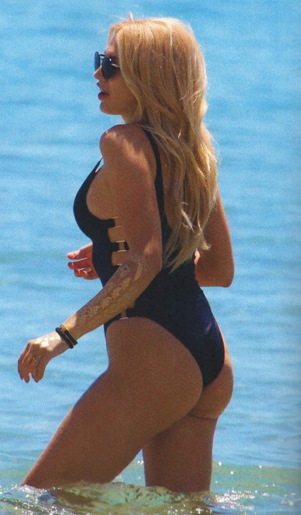 Ο φωτογραφικός φακός του "ΟΚ!" την απαθανάτισε με ένα σικ μαύρο ολόσωμο μαγιό σε παραλία στη Βάρκιζα μαζί με την συνεργάτιδά της από την εκπομπή "Σπίτι μου σπιτάκι" μου και την τραγουδίστρια Josephine (που συνάντησαν εκεί).