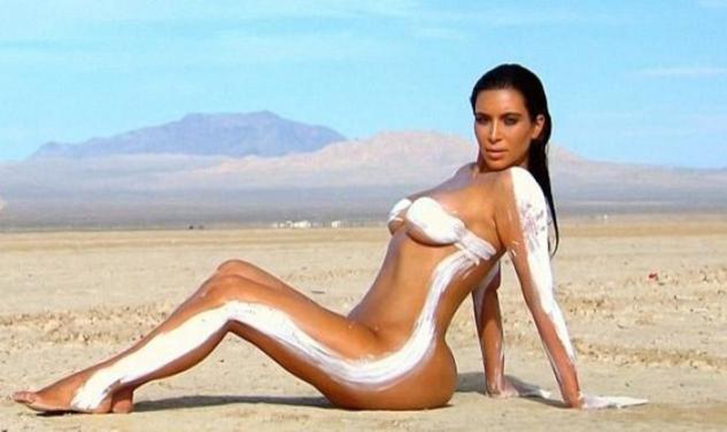 Η τηλεπερσόνα πόζαρε στο φακό γυμνή για το reality show "Κeeping up with the Kardashians"! Η Κim έκατσε στην καυτή έρημο και "φορώντας" μόνο... μια λευκή πινελιά μπογιάς σε κάποια σημεία του κορμιού της και σίγουρα με την εν λόγω σέξι φωτογράφησή της θα αναστατώσει τους θαυμαστές της.