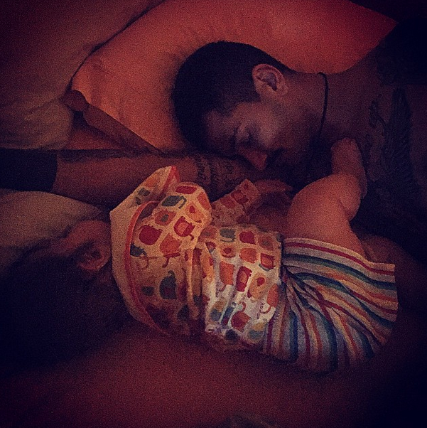 Η τραγουδίστρια “ανέβασε” μία φωτογραφία του συντρόφου της, Σάββα Γκέντσογλου, να κοιμάται στο πλάι του μικρού γιου τους.