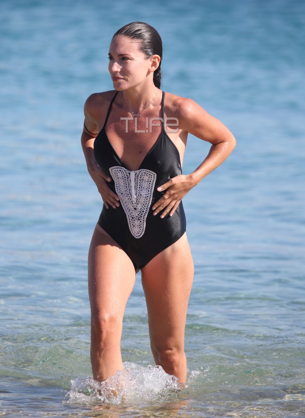 Λίγες ημέρες αργότερα και η σύντροφος του Αλέξανδρου Μπουρδούμη εμφανίστηκε με το ίδιο μαγιό, σε παραλία της Μυκόνου και χαμογελαστή πόζαρε στον φωτογραφικό φακό βγαίνοντας από την θάλασσα.