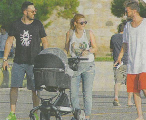 Πριν από λίγες ημέρες λοιπόν, το ζευγάρι με τον μόλις λίγων ημερών γιό τους και τον καλό τους φίλο και ηθοποιό Λεωνίδα Καλφανιάννη, έκαναν μία βόλτα στην ηλιόλουστη παραλία της Θεσσαλονίκης, συζητώντας ευχάριστα, ενώ στη συνέχεια επέστρεψαν στο σπίτι, καθώς το λίγων ημερών μωράκι απαιτεί συχνή φροντίδα και το ζευγάρι δεν μπορεί να λείπει πολλές ώρες από το σπίτι.