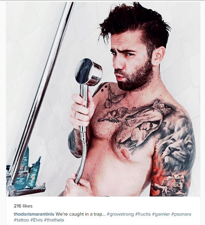 Ο Θοδωρής Μαραντίνης δημοσίευσε στον προσωπικό του λογαριασμό στο instragram μία τολμηρή φωτογραφία. O Θοδωρής Μαραντίνης και οι Οnirama, βρίσκονται στην Αμερική για ζωντανές εμφανίσεις, όπως είχε γράψει και η Έλλη Κοκκίνου και σήμερα ο τραγουδιστής δημοσίευσε μια φωτογραφία σε στυλ Elvis Presley. O Θοδωρής πόζαρε γυμνός στο ντους του ξενοδοχείου, κρατώντας το τηλέφωνο του ντους ως μικρόφωνο.