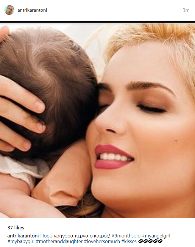 Η ίδια πόσταρε μία φωτογραφία στον προσωπικό της λογαριασμό στο instagram, όπου η Αργυρώ της βρίσκεται στην αγκαλιά της, ενώ στη λεζάντα που τη συνόδευσε, έγραψε: “Ποσό γρήγορα περνά ο καιρός!”, επισημαίνοντας πως σήμερα η μπέμπα της γίνεται εννέα μηνών.