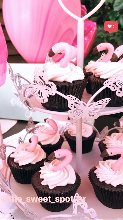 Οι χρωματισμοί που επικρατούσαν ήταν βεβαίως το ροζ τόσο στη διακόσμηση όσο και στα γλυκά, ενώ το θέμα του πάρτι ήταν τα φλαμίνγκο, τα οποία υπάρχουν παντού, είτε ως ζωγραφιές, είτε ως σχήμα στα μπαλόνια και στις ζαχαροδημιουργίες.