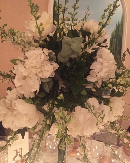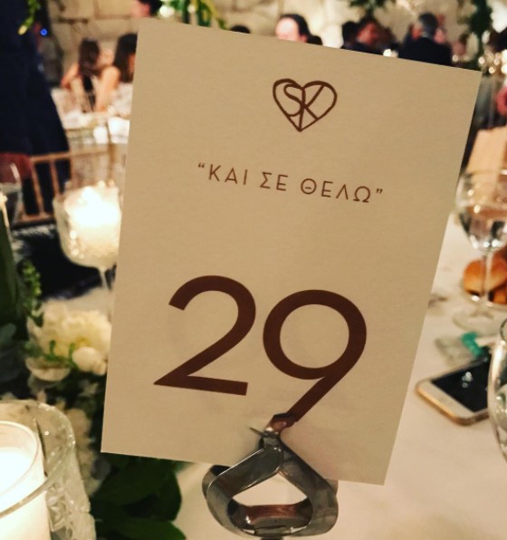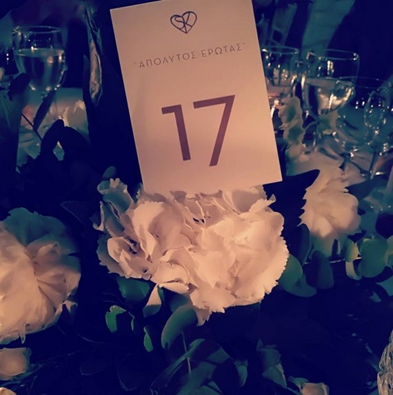 Το λευκό ήταν το χρώμα που κυριαρχούσε στην διακόσμηση όπως και το χρυσό, αποχρώσεις που είδαμε τόσο στα λουλούδια όσο και στην μπομπονιέρα με το σύμβολο S και K μέσα σε μια καρδιά.