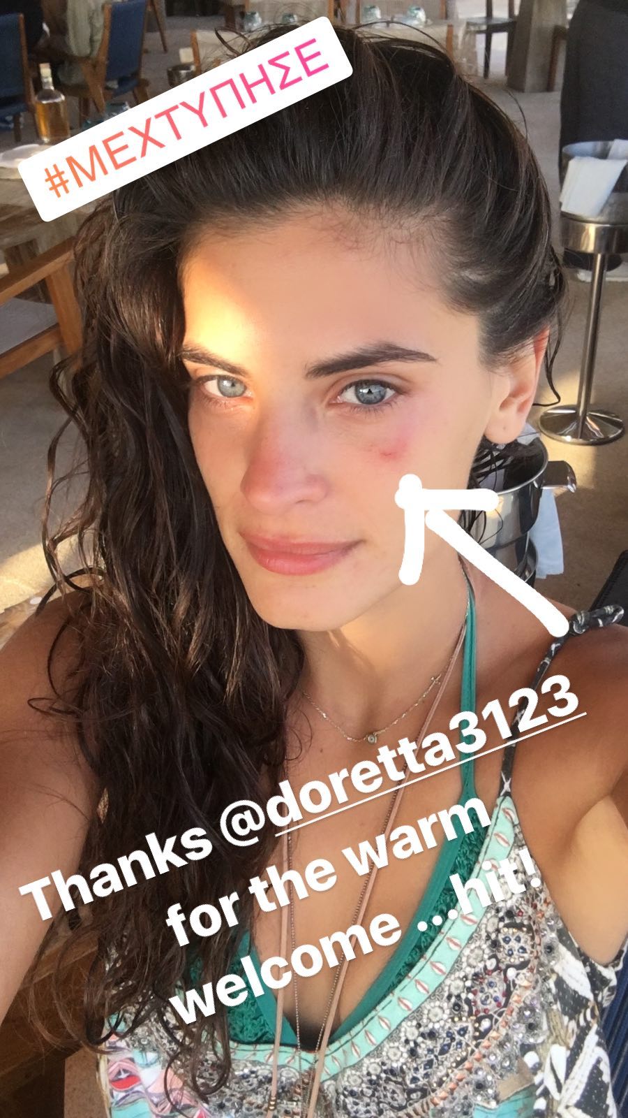 Ανησυχία προκάλεσε η θέα της συντρόφου του Σάκη Τανιμανίδη, Χριστίνας Μπόμπα, με χτυπημένη την περιοχή γύρω από το μάτι της.