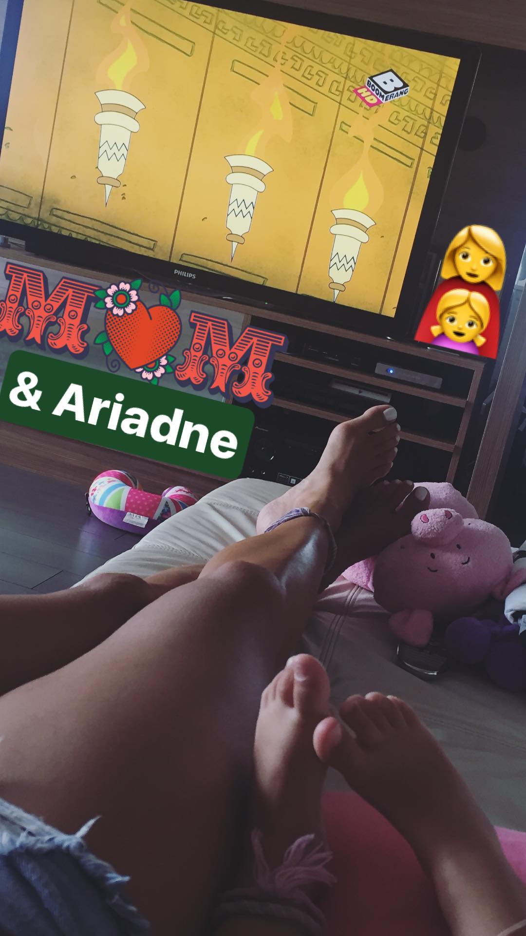Η παρουσιάστρια, ανήρτησε στον instastories, το βράδυ της Πέμπτης, 20 Ιουλίου, μία φωτογραφία, όπου είναι ξαπλωμένη στο κρεβάτι έχοντας στο πλευρό της την κόρη της, βλέποντας παιδικά στην τηλεόραση και απολαμβάνοντας τις σημαντικές αυτές στιγμές μαμάς – κόρης.