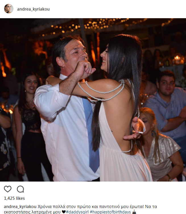 Τα γενέθλιά του έχει σήμερα, Τρίτη, 10 Οκτωβρίου, ο πατέρας της Άντρεας Κυριάκου, ο οποίος τη συνόδευσε και ντυμένη νυφούλα στις αρχές του φετινού καλοκαιριού, όταν ανέβηκε τα σκαλιά της εκκλησίας με τον εκλεκτό της καρδιάς της, Γιώργο Μερκή.