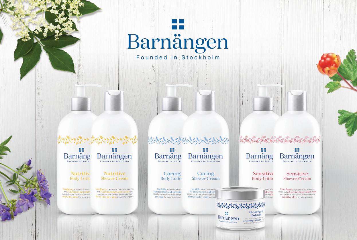 Τα προϊόντα Barnängen είναι διαθέσιμα σε κρεμοντούς και Body Lotion των 400ml σε 3 σειρές: τη σειρά Barnängen Caring, με γάλα βρώμης και 5% Cold Cream που δημιουργεί μια σύνθεση που προστατεύει και διατηρεί τη φυσική ισορροπία του δέρματος, τη σειρά Barnängen Nutritive, με Cloudberry και 7% Cold Cream που ανακουφίζει και ενυδατώνει ακόμα και τις πιο ξηρές επιδερμίδες, τη σειρά Barnängen Sensitive, εμπλουτισμένη με σύνθεση από άνθη κουφοξυλιάς και 5% Cold Cream που αγκαλιάζει με εκλεπτυσμένη φροντίδα τα ευαίσθητα δέρματα προσφέροντας μεταξένια απαλότητα. Τέλος το All Over Rescue Body Balm από το Barnängen, εμπλουτισμένο με προστατευτική Cold Cream, προσφέρει ενυδάτωση και απαλή περιποίηση στο δέρμα.