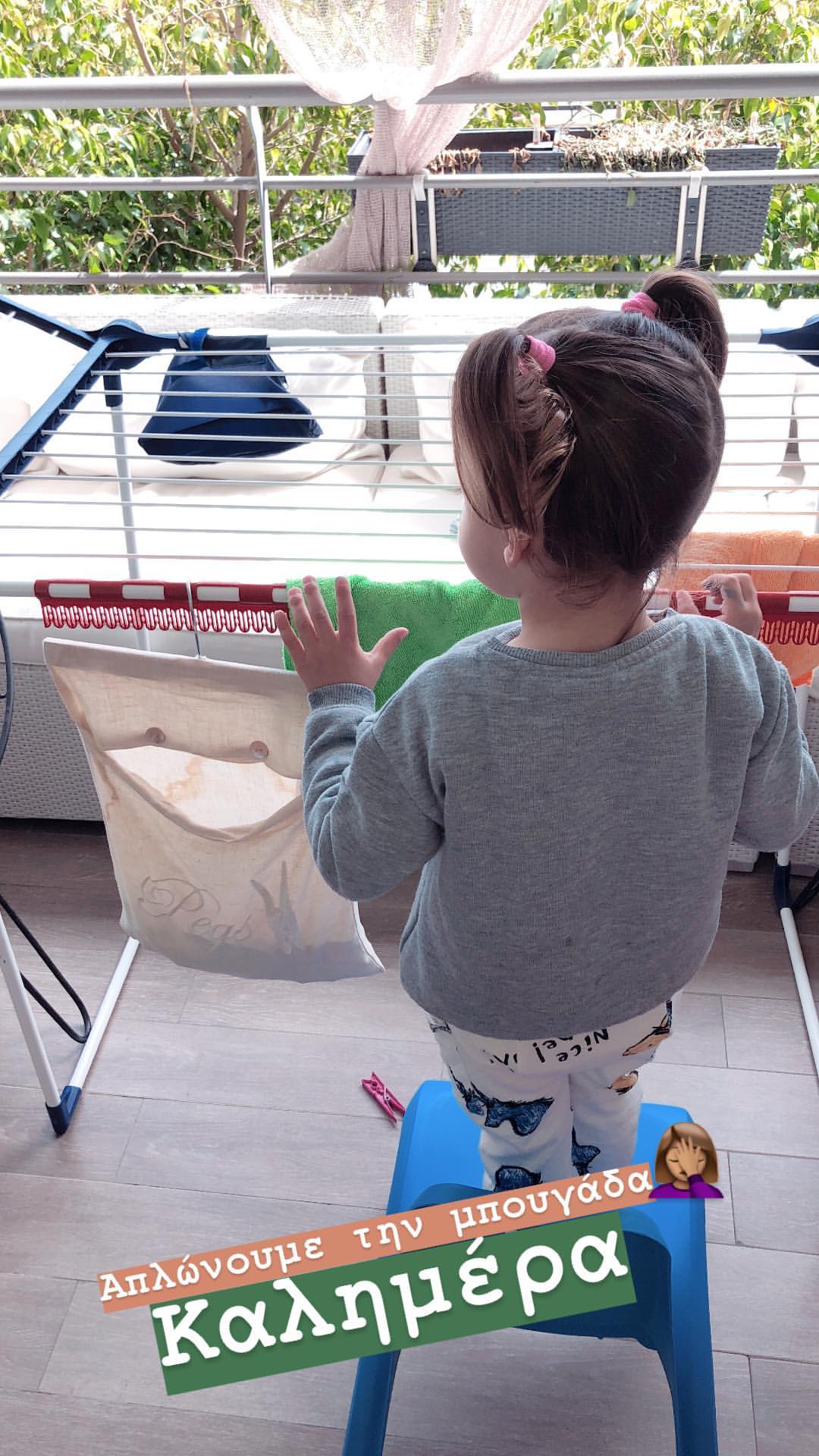 Το έχει δηλώσει η ίδια. Όλες οι ελεύθερες ώρες όταν της το επιτρέπουν οι επαγγελματικές της υποχρεώσεις είναι αφιερωμένες στη μεγάλη της αδυναμία που δεν θα μπορούσε να είναι άλλη από την 2 ετών κορούλα της Αριάδνη. Ο λόγος φυσικά για την Κωνσταντίνα Ευριπίδου η οποία μέσα από τον προσωπικό της λογαριασμό στο instagram μας έδειξε τι έκαναν σήμερα το πρωί μαμά και κόρη. Οι δυο τους λοιπόν έκαναν την μπουγάδα του σπιτιού και η μάλιστα η μικρή Αριάδνη πήρε το σκαμπό της και βοήθησε τη μαμά της για να βάλει τα ρούχα στην απλώστρα. Δείτε την εικόνα που ανήρτησε η παρουσιάστρια στο instastory της ενημερώνοντας για το όμορφο πρωινό που πέρασε με την κορούλα της τους διαδικτυακούς της φίλους. Δεν είναι απλά αξιαγάπητη;