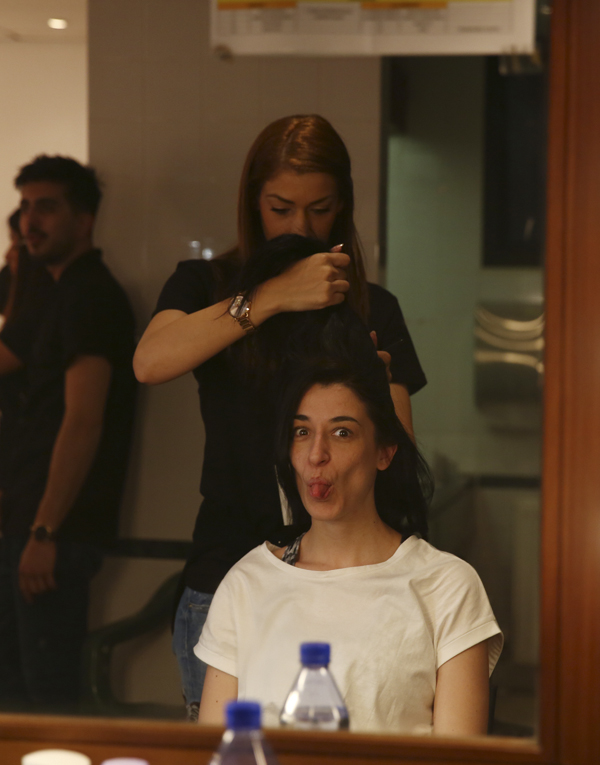 Τελευταίες πινελιές στο μακιγιάζ και για την Μαρίζα Ρίζου λίγο πριν ανεβεί στην σκηνή