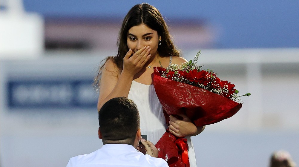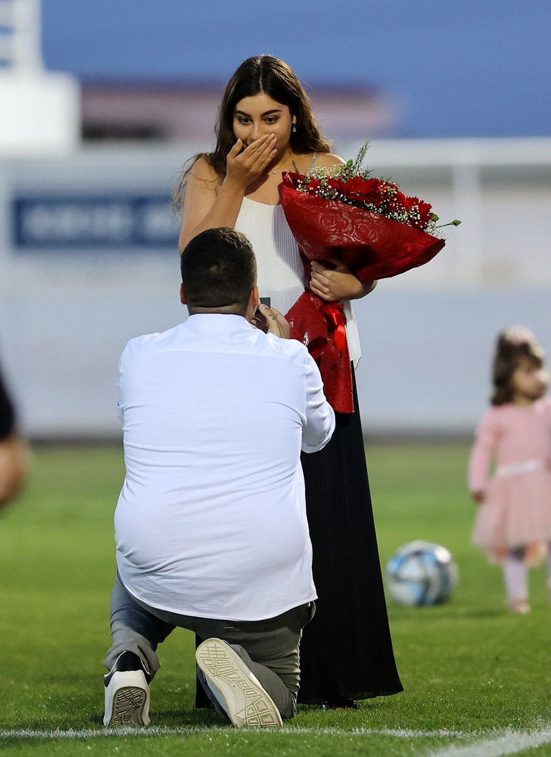 Συγκεκριμένα στο ημίχρονο του αγώνα, ο Ανδρέας, υπεύθυνος των ανακοινώσεων του γηπέδου κατέβηκε μέσα στο γήπεδο και έκανε πρόταση γάμου στην αγαπημένη του Τατιάνα. Εκείνη συγκινημένη του είπε το «Ναι». Δείτε πιο κάτω φωτογραφίες: