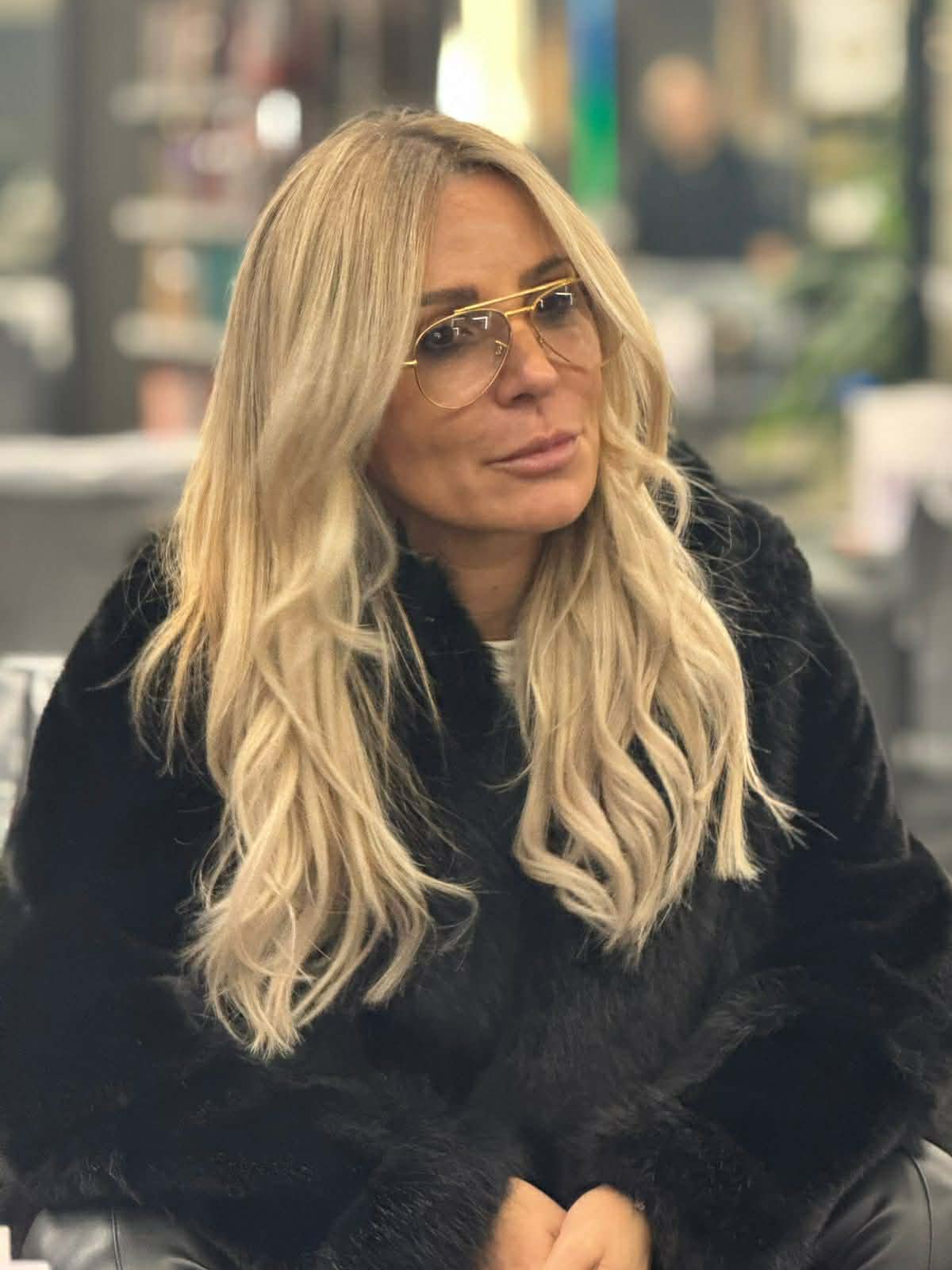 «Για το νέο look της Γιώτας εφαρμόσαμε full head air touché σε αποχρώσεις ice blonde, μια τεχνική που προσφέρει φυσικό αποτέλεσμα, βάθος και πολυδιάστατη λάμψη, χωρίς σκληρές γραμμές», εξηγεί. Το ice blonde, άλλωστε, θεωρείται μία από τις πιο elegant και σύγχρονες ξανθές αποχρώσεις, ιδανική για όσες θέλουν κάτι φωτεινό αλλά refined.