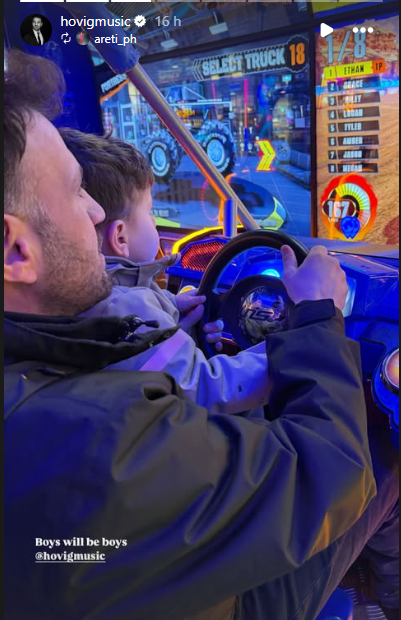 Συγκεκριμένα, η σύζυγός του Κύπριου καλλιτέχνη, απαθανάτισε μια τρυφερή στιγμή του Hovig μαζί με τον γιο τους, Άρη, την ώρα που απολαμβάνουν το παιχνίδι τους.